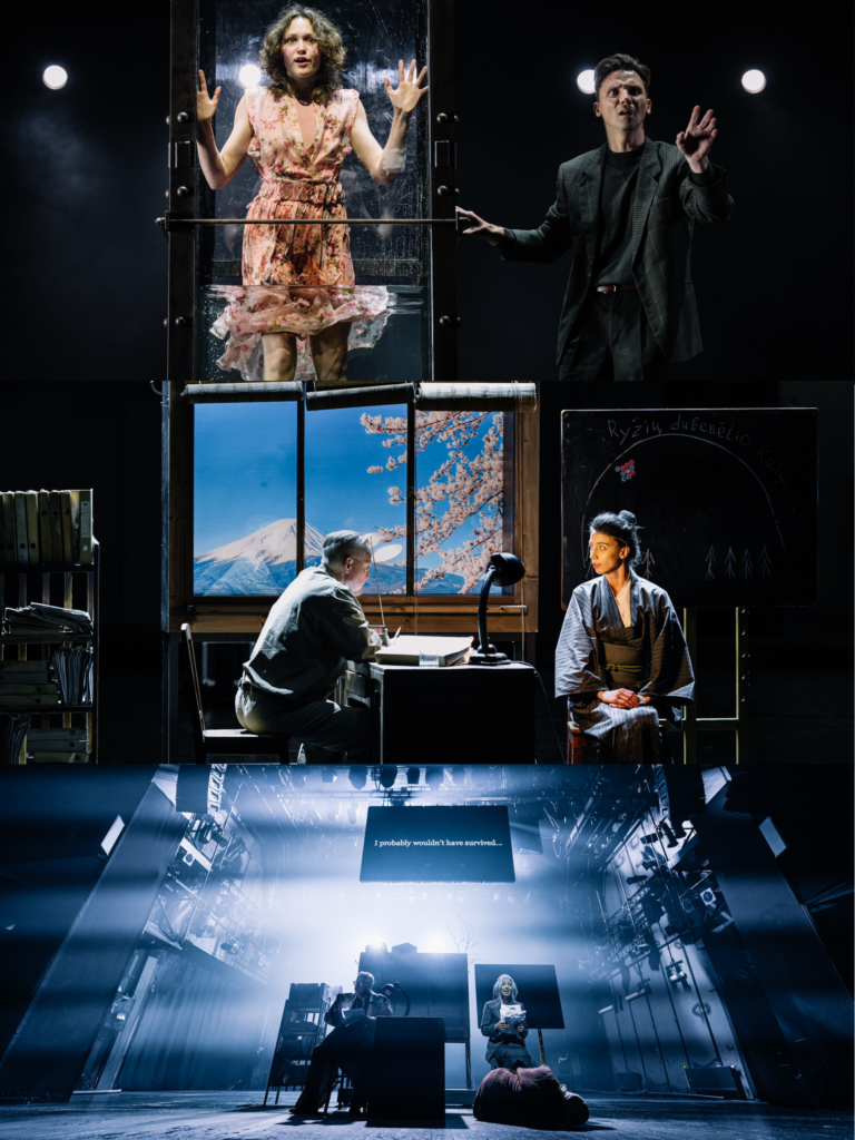 “Our play is called ‘The Fragment’ (Lith. “Fragmentas”). This fragment is from A. Chekhov’s play ‘Three Sisters’ – beginning of the third act – the night fire. In the center, as if under a magnifying glass, Olga, the eldest of the three sisters. In this dramatic piece of work: axon, fear, foreboding and struggle. The struggle is hopeless and perhaps not very successful – like all attempts by A. Chekhov’s heroes, including Olga – to defeat fate, which does not allow them to save the cherry orchard, become a writer or go to Moscow. They are doomed to fail. All that remains are the attraction to each other, suffering and loneliness. A. Chekhov is generally not concerned with the result but with the attempt itself, and that is what makes his characters so close and dear to us”.