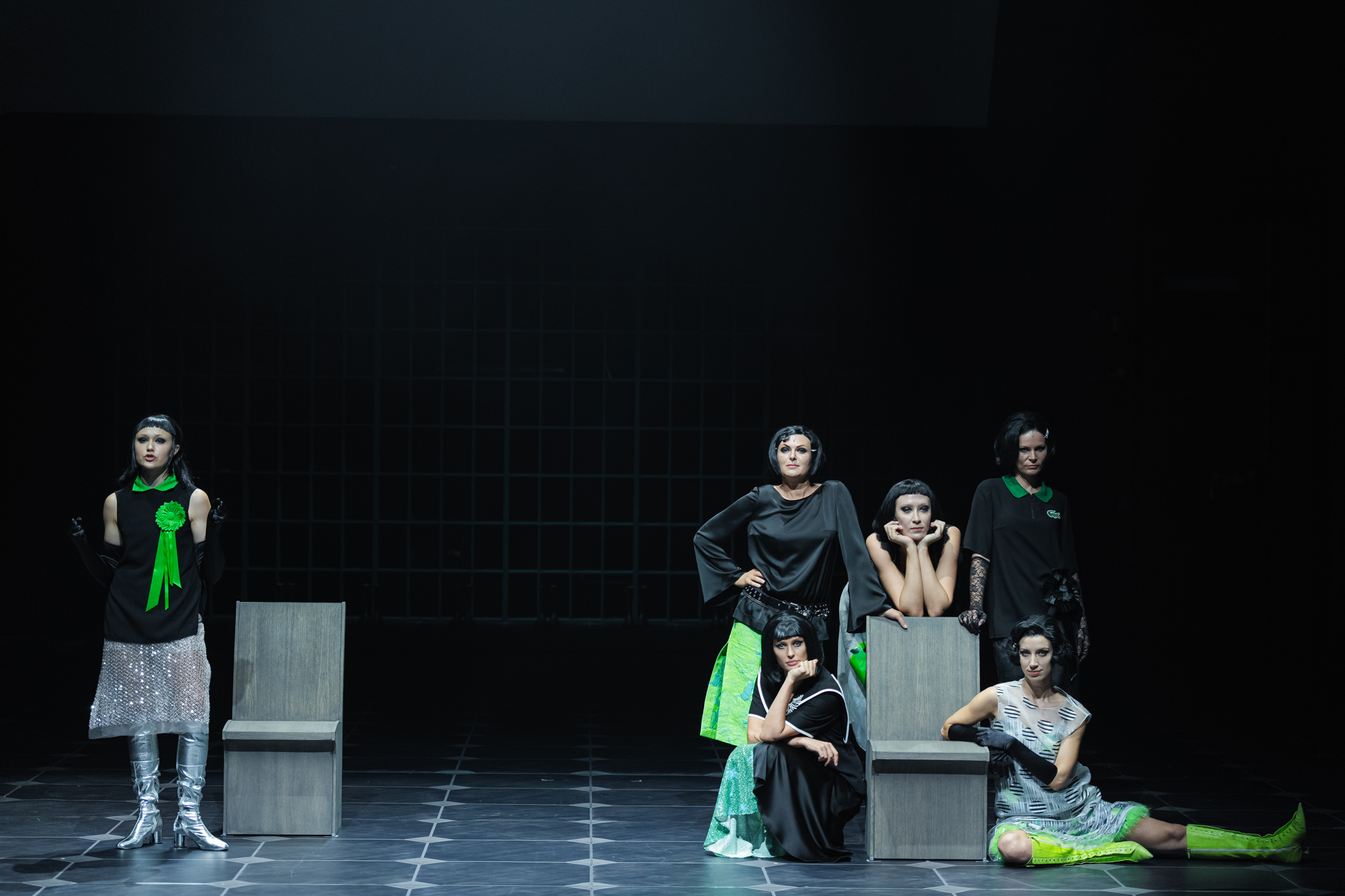 Spektaklyje vaidina: Toma Gailiutė, Eglė Jackaitė, Digna Kulionytė, Samanta Pinaitytė, Justina Vanžodytė, Aistė Zabotkaitė.