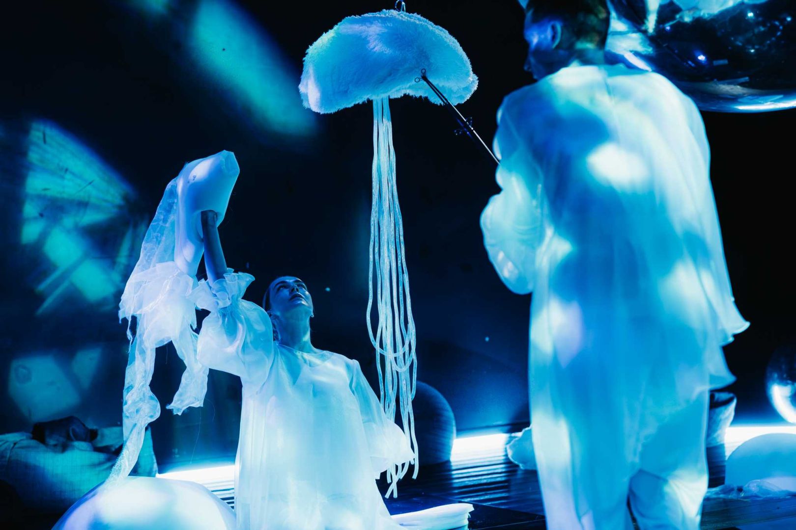 Patirtinis sensorinis spektaklis 6–18 mėnesių vaikams ir jų tėvams, kviečiantis atrasti paslaptingą ir gyvybės kupiną vandens pasaulį.